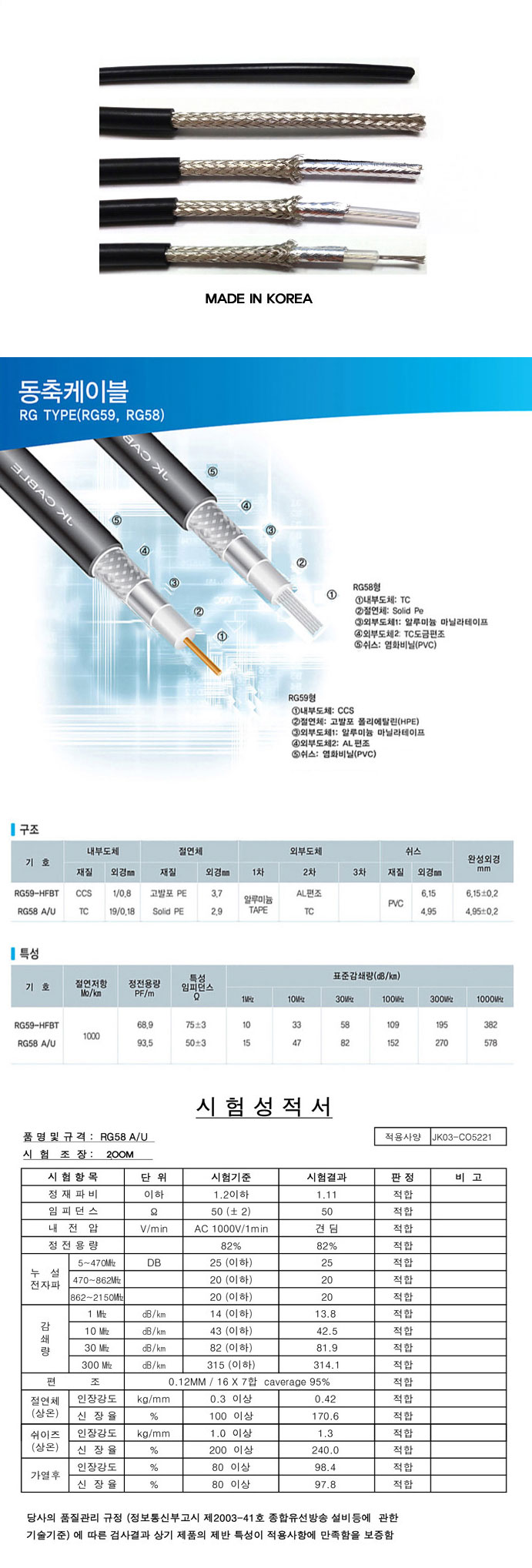 ÇöÀçÀ§Ä¡ : Ȩ > ÄÄÇ»ÅÍ/³×Æ®¿öÅ©/Åë½Å ÄÉÀÌºí ¹× °ü·ÃÁ¦Ç° > »ê¾÷¿ë 50¿È °èÃø/Åë½Å ÄÉÀ̺í > RG-58 50¿È ÄÉÀ̺í